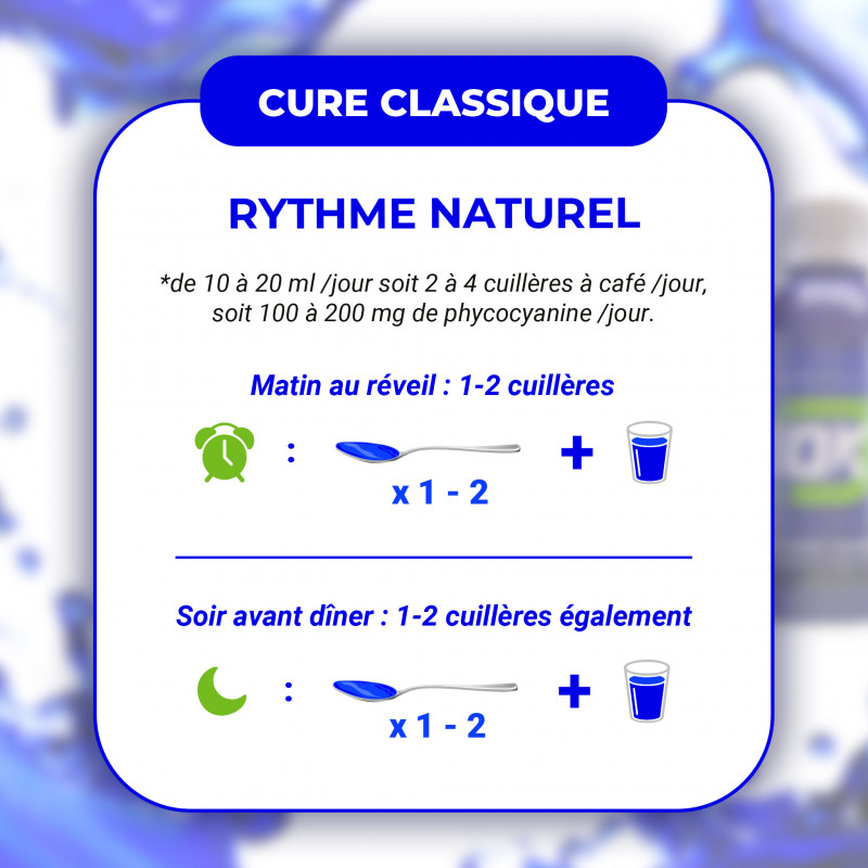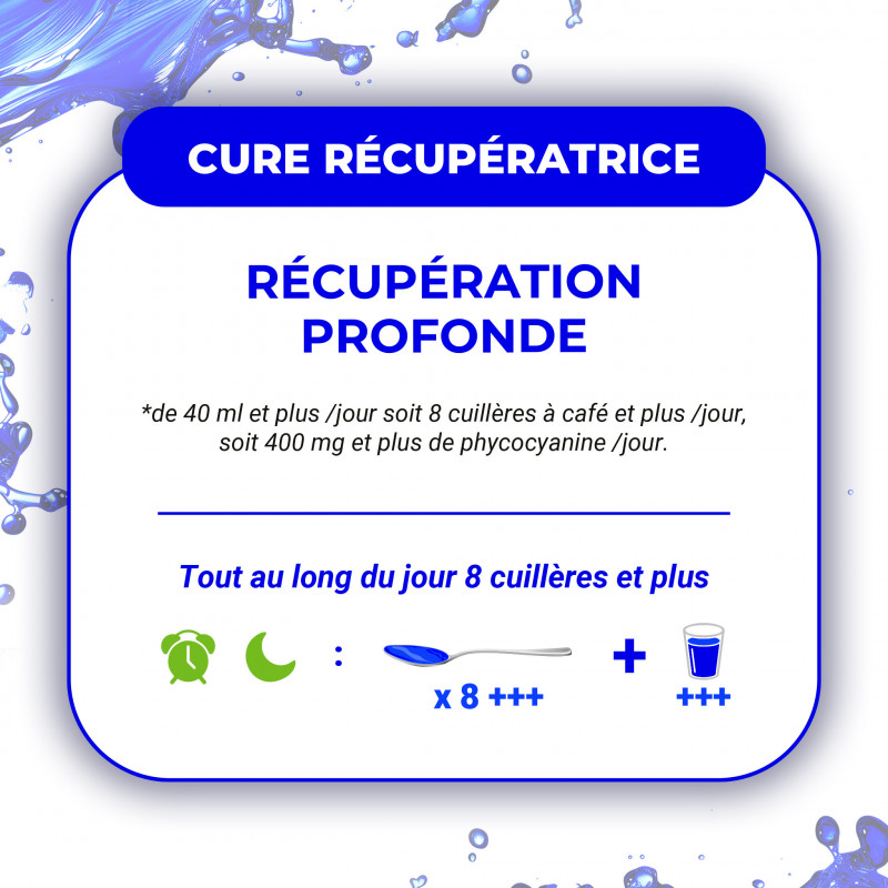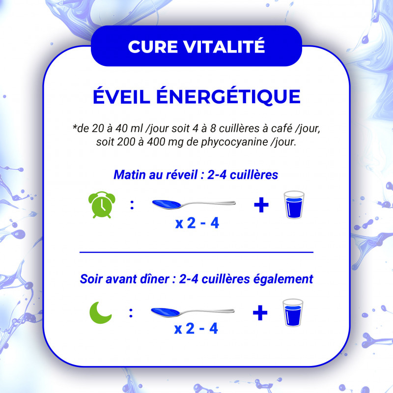 Complément naturel ultra-concentré en phycocyanine (10 000 mg/L), conçu pour soutenir votre énergie, votre récupération et votre vitalité quotidienne.